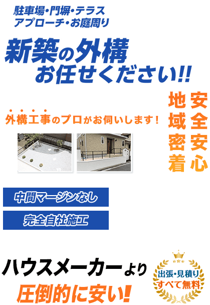 新築戸建のお庭や駐車場工事は 新築戸建のお庭や駐車場工事は